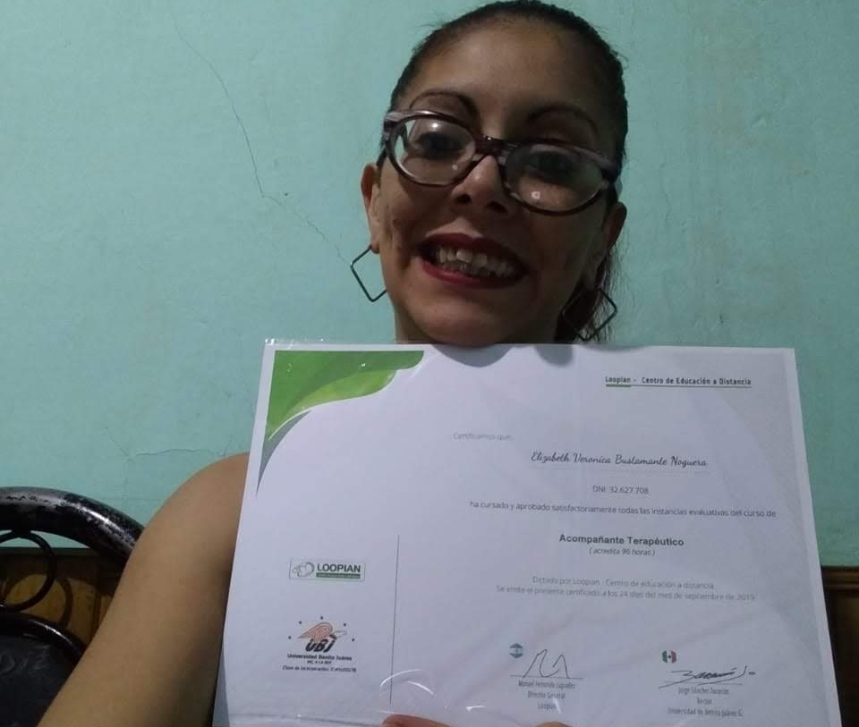 Es de Mendoza y trabaja como cuidadora desde 2016. Recientemente tuvo la posibilidad de reforzar conocimientos a través de del curso “Cuidar y cuidarse”.
